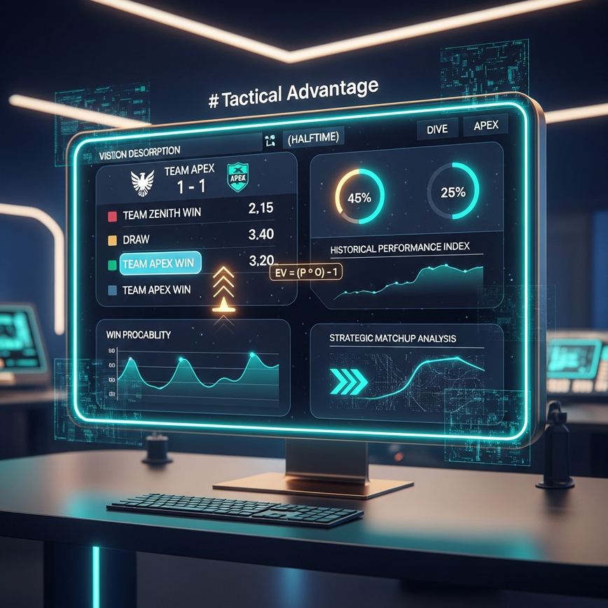 Digital sports betting interface showing various odds, probability calculations, and analytical graphs, symbolizing the strategic approach to value betting and finding an edge.